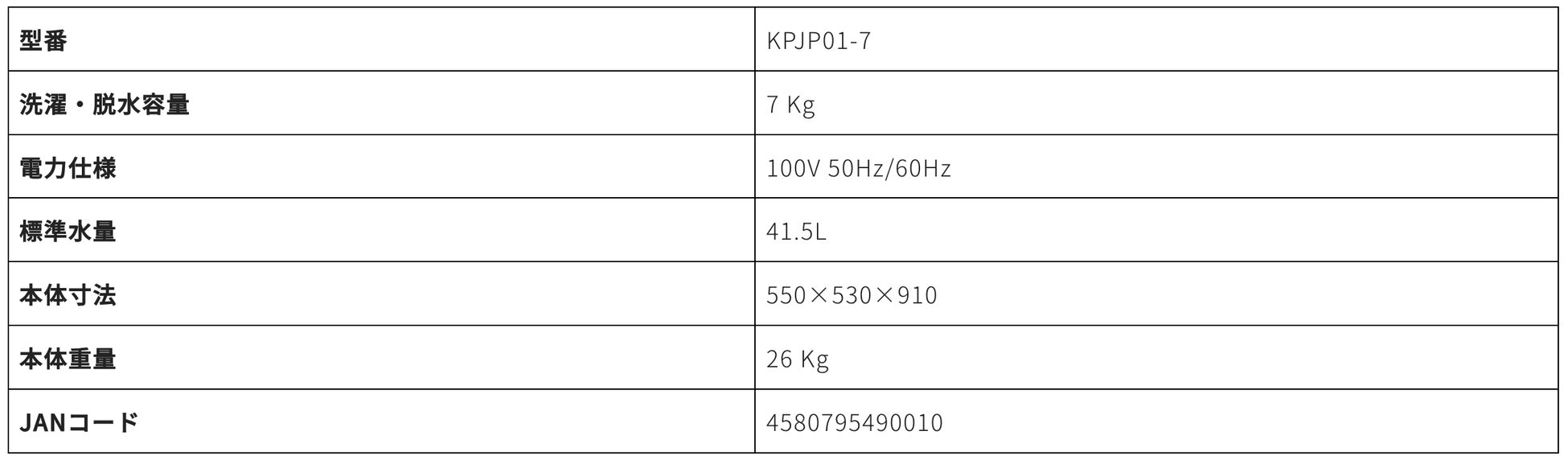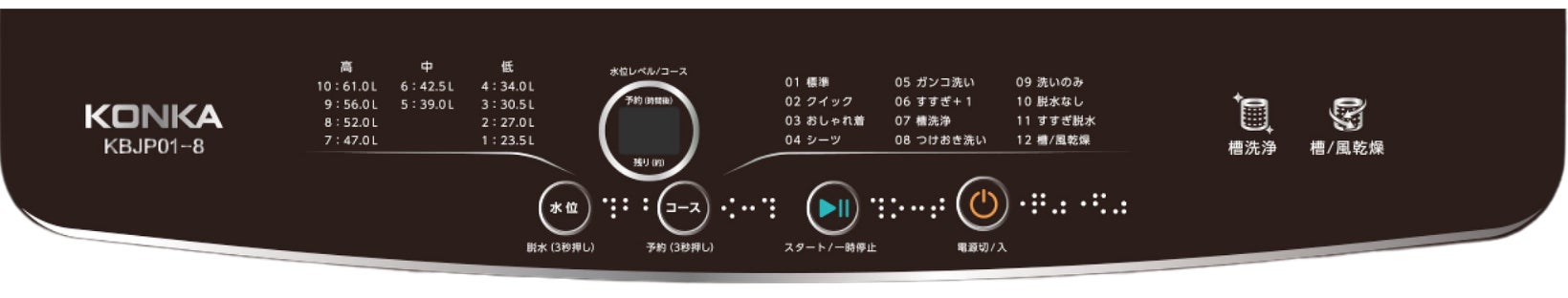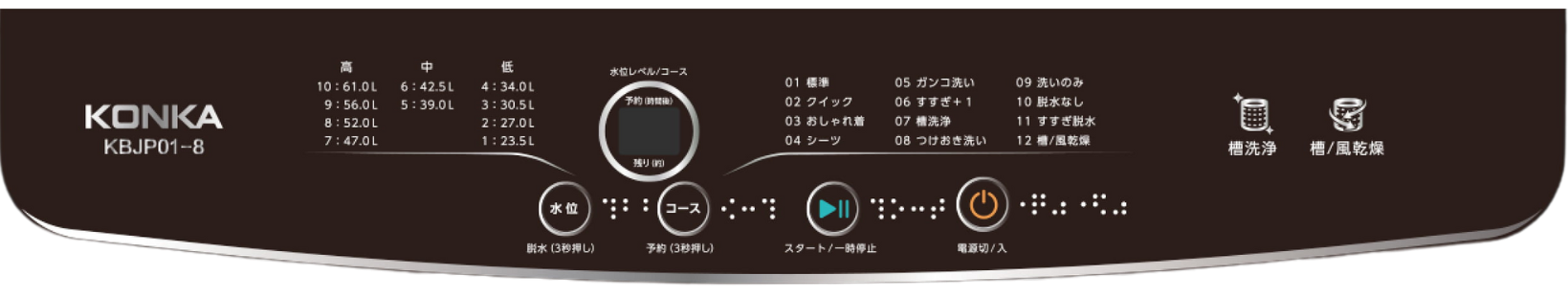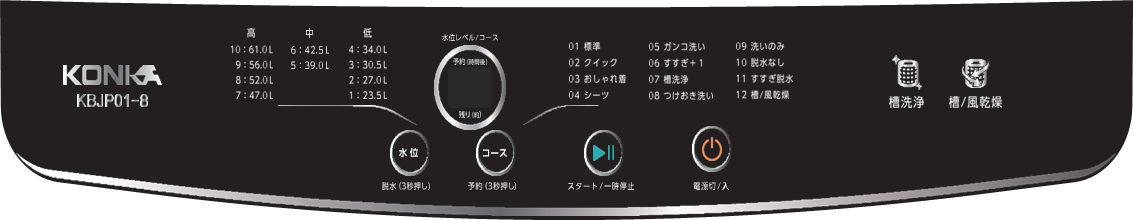 7㎏(KBJPO1-7)・8kg(KBJPO01-8)の2型式。選べる12の洗濯コース、10段階の水位設定、見やすい操作性パネル搭載など・・・・・・・・