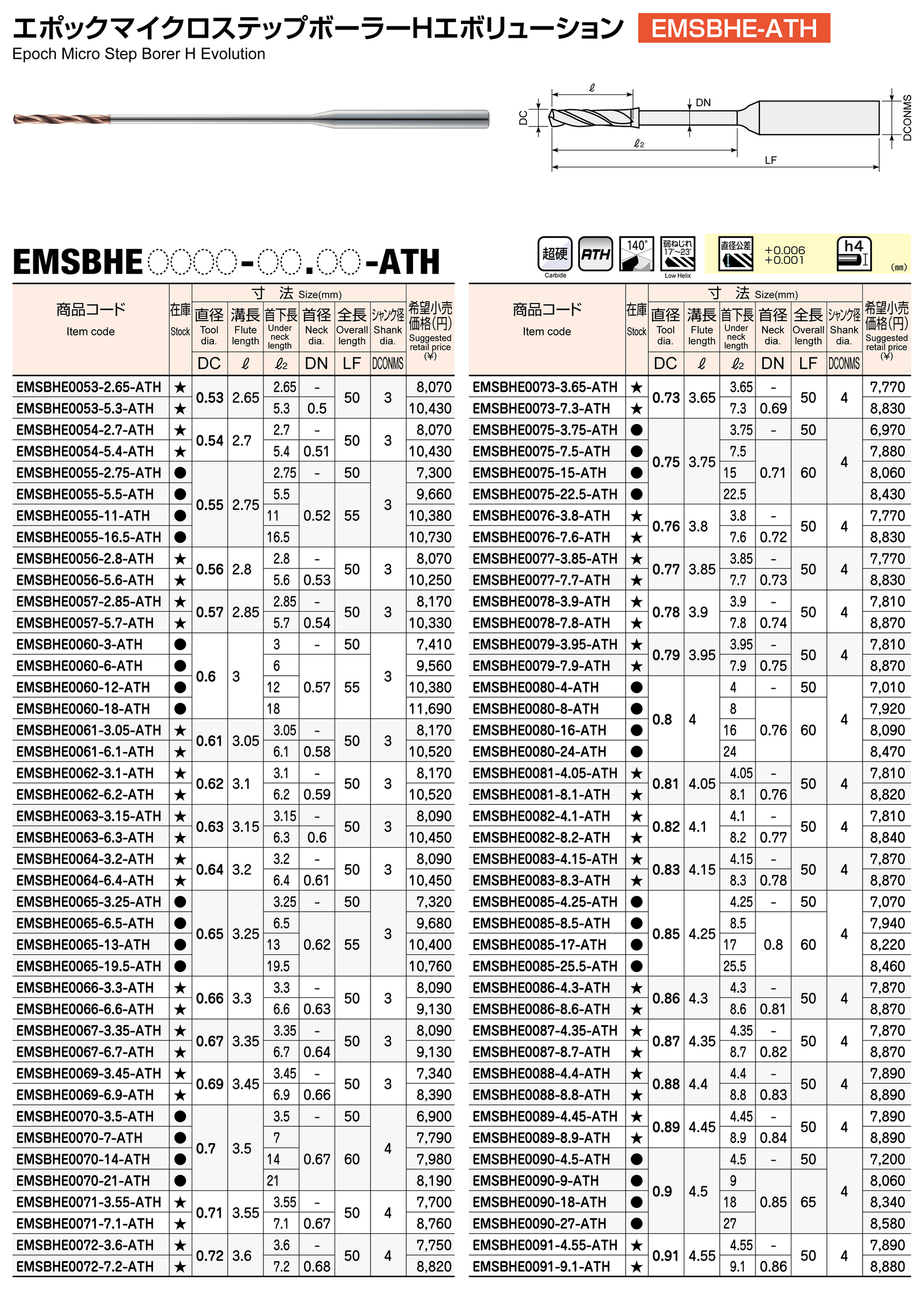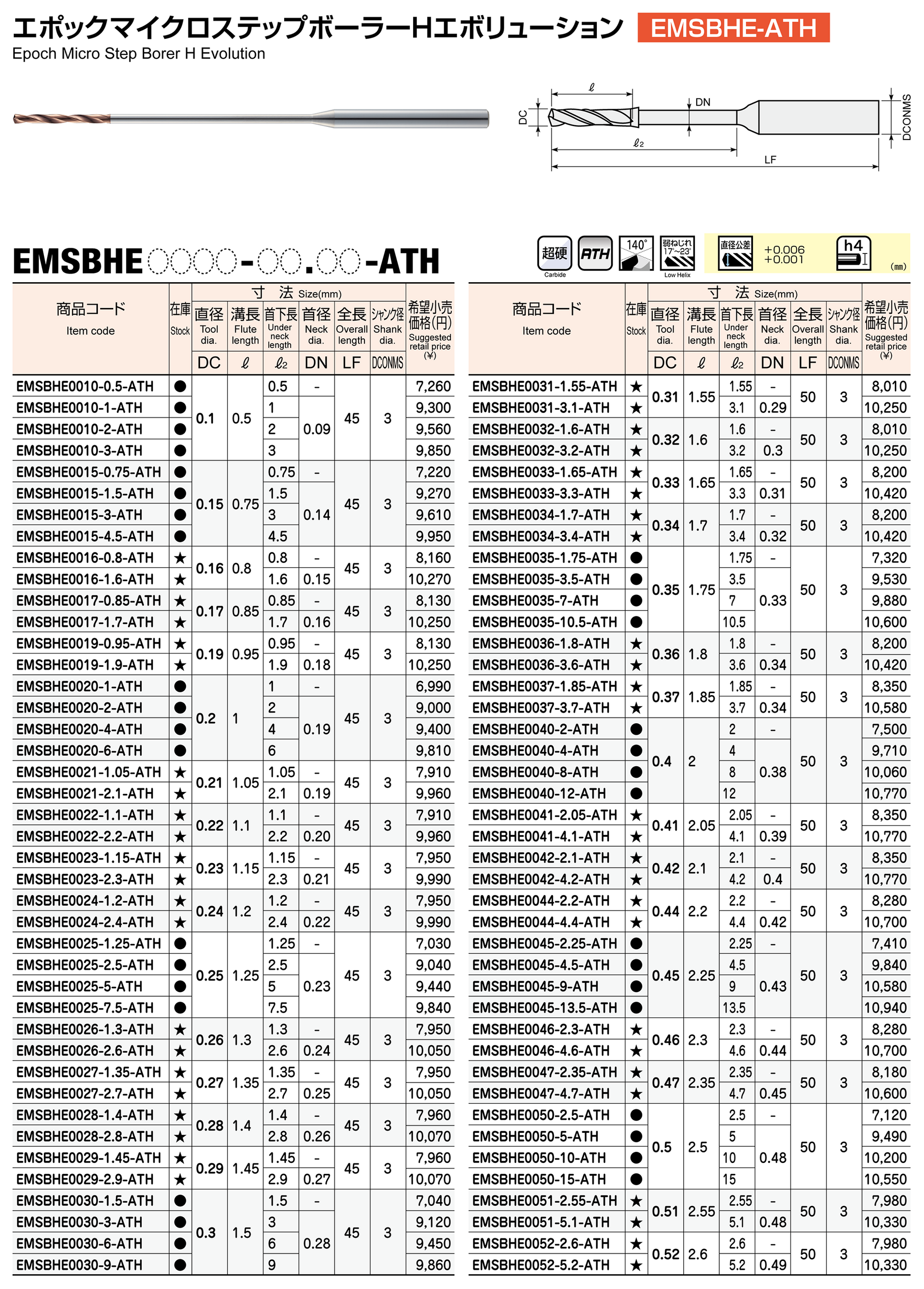 高硬度鋼用微細超深穴加工ドリル エポックマイクロステップボーラーHエボリューション「EMSBHE-ATH」にサイズを追加 2026年3月23日発売
