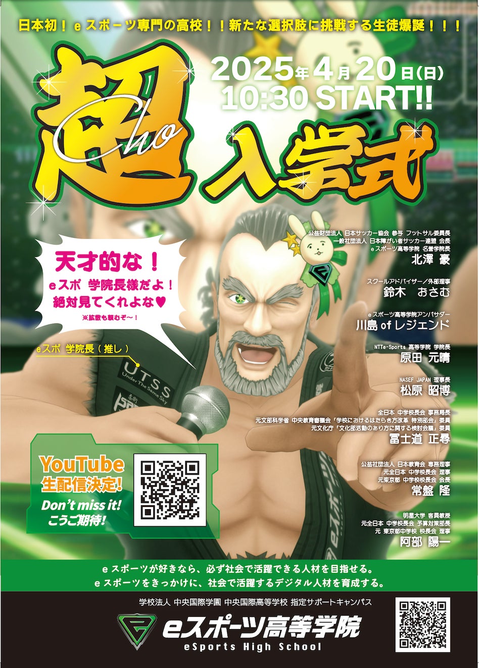 eスポーツ高等学院 令和7年度超入学式!4月20日挙行決定!youtube生配信も決定!