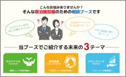 アメニティの未来を“サステナブル・地域性ブ ランド価値”の3つの視点から探り、素材・地域コラボ・高級ラインなど多彩な実物を手に取りながら、これからのアメニティづくりを一緒に考えられる相談型ブースです。アメニティの未来を一緒に考えてみませんか?