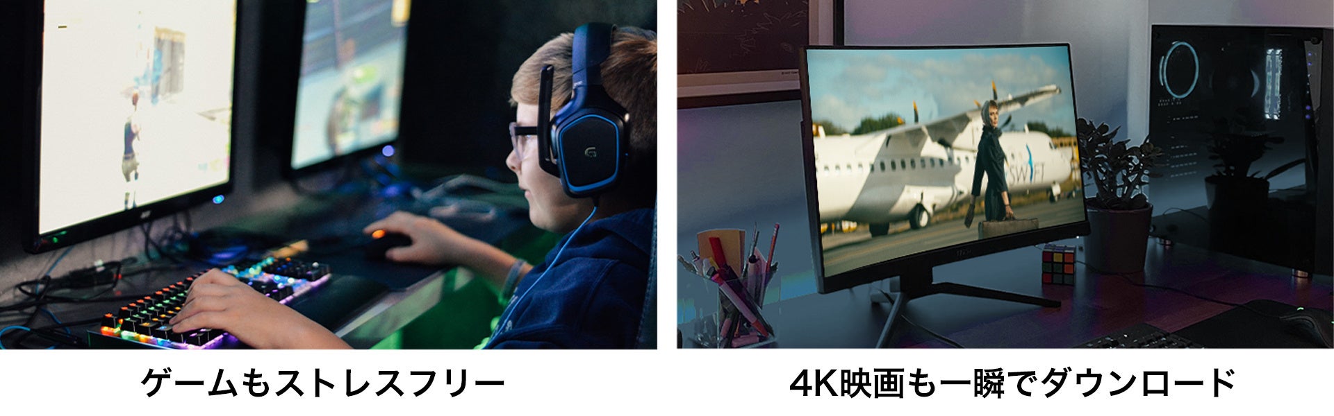 1Gbpsを超える高速インターネット回線のポテンシャルを活かした快適なゲームや動画視聴も楽しめるようになり、PCのネットワークを手軽にパワーアップ可能です。