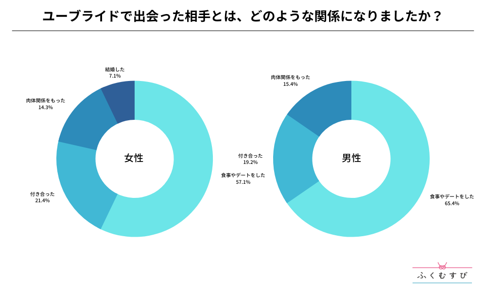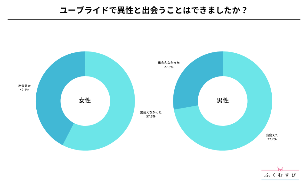 ・ユーブライドで異性と出会えた割合は、男性が72.2%、女性が42.4%となりました。