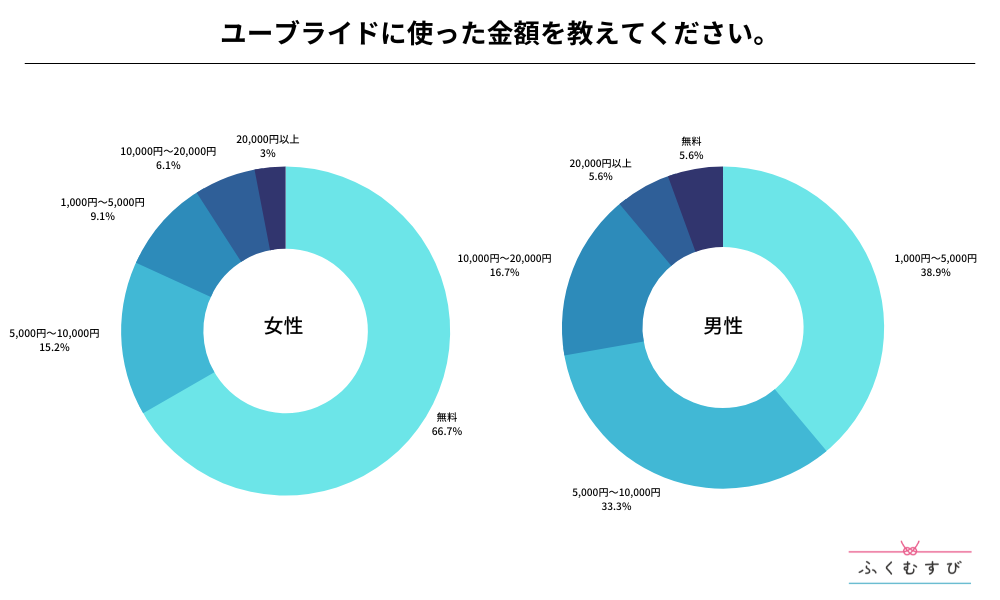 ・男性がユーブライドに使った金額は、1,000円〜5,000円が最も多くなりました。