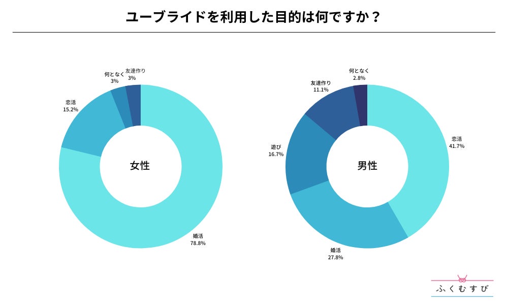 ・女性がユーブライドを利用した目的は、婚活が1位、恋活が2位となりました。