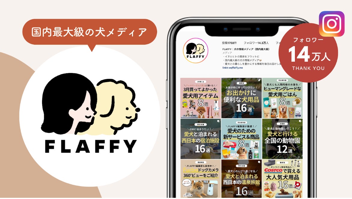 ペットとの生活を豊かにする情報を発信している14.4万フォロワーの国内最大級のInstagram「FLAFFY.me」のメディアを運営。企業さまの商品やサービスのPRを実施し、コラボアイテムの発売や企画も実施しています。
