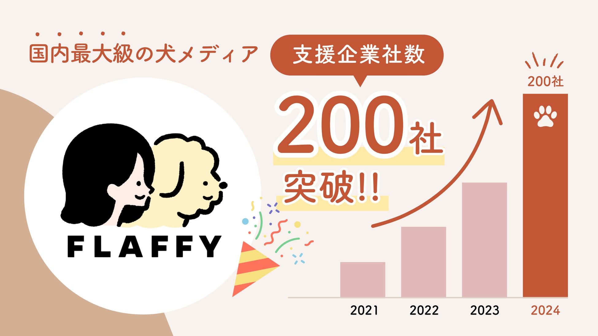 “イヌとヒトの関係をフラットに”をコンセプトに、14万フォロワーの国内最大級の犬情報メディア事業や人間の服を愛犬の服にリメイクするサービスを複数展開する株式会社FLAFFY(本社:東京都渋谷区、代表取締役:廣田 智沙/以下 当社)は、支援企業数200社を突破したことをお知らせします。また、メディア事業を通じて、イベント・プロダクト・プロデュースなど事業を複数展開していきます。