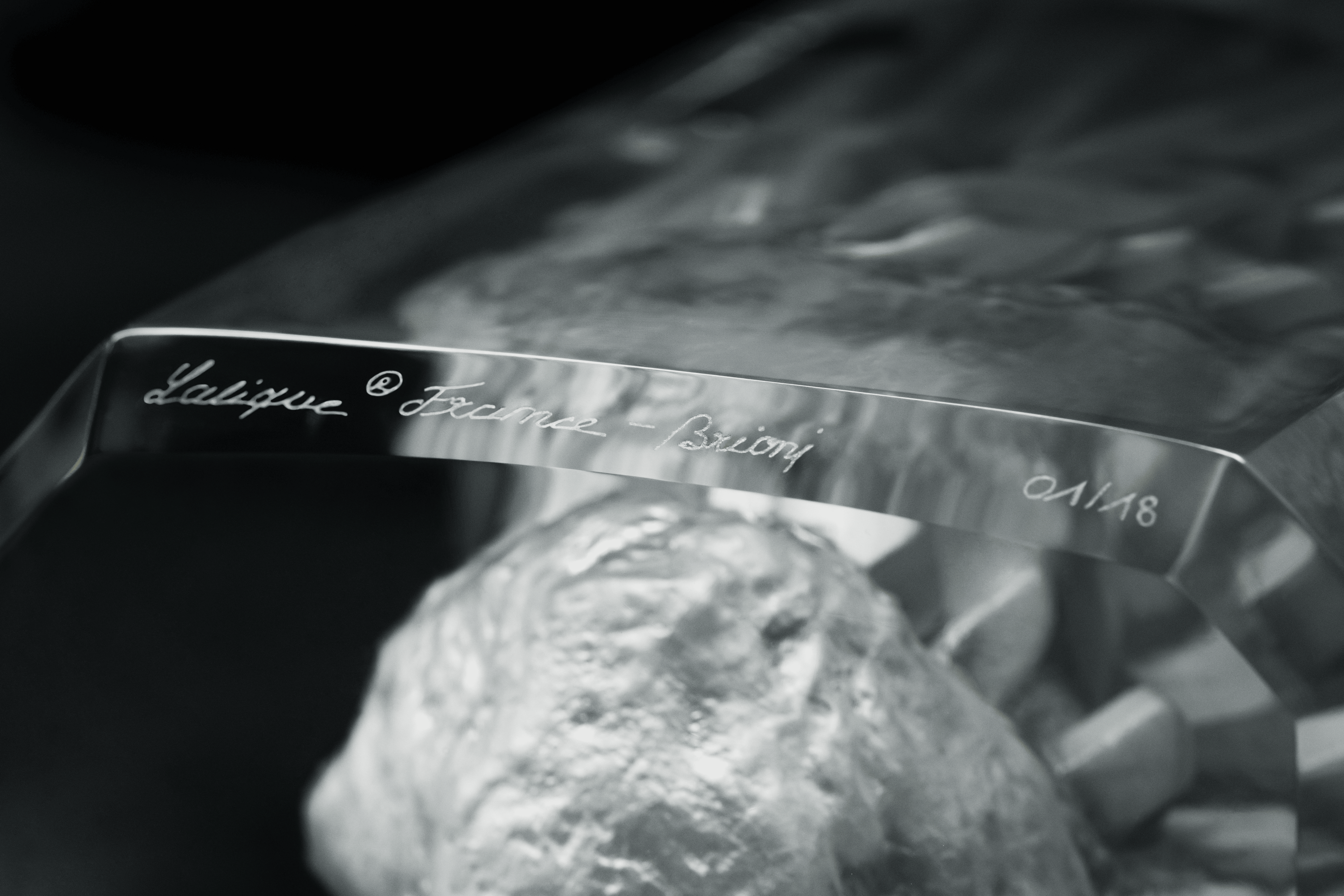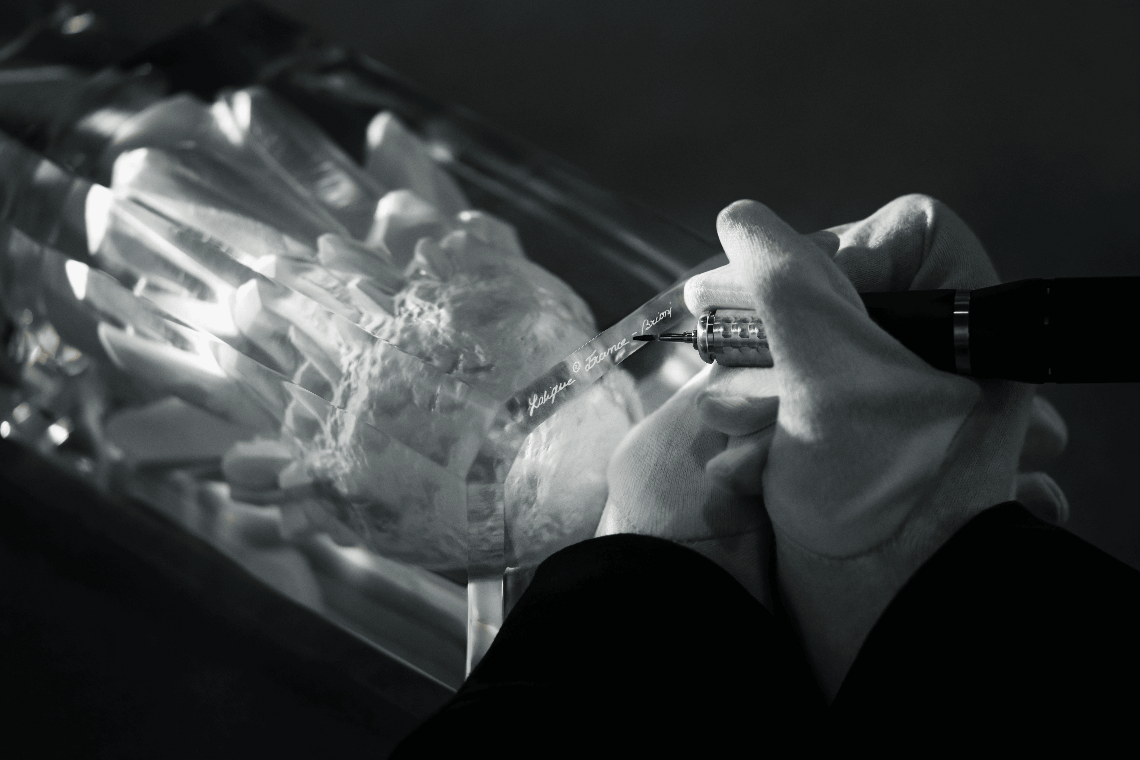 このビジョンを実現するには、高度な職人技が求められます。「デュアリテ クリスタル エディション パルファム」は、フラコン内部の繊細な彫刻的ディテールを形作るために、伝統的なシール・ペルデュ(ロストワックス)製法を用いて製作されています。この製法は、1893年にルネ・ラリックが初めて試みたものであり、ラリックの熟練した職人たちによって、フランス・アルザス地方ヴィンゲン・シュル・モデにある工房で代々受け継がれてきました。こうした職人技の継承と洗練を通じて生み出された本作は、ブリオーニの「スローラグジュアリー」の哲学を体現しており、真のクラフツマンシップと芸術性を証明しています。