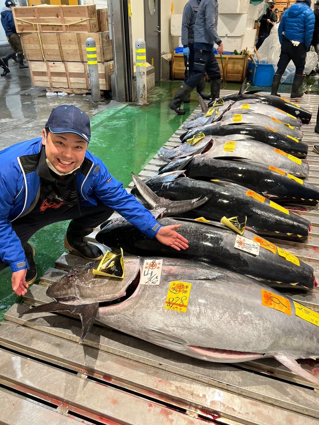 有楽町かきだ大将、一度に2本の生本マグロを買い付ける 新ネタのアブラボウズも