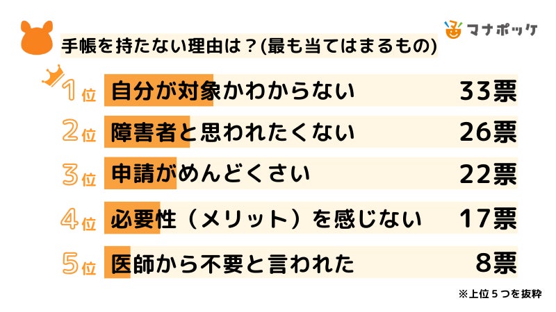 - 手帳を持っていない理由1位「自分が対象かわからない」