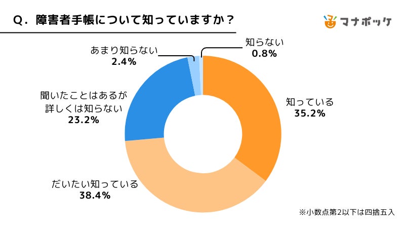 約7割の人が障害者手帳について「知っている」「だいたい知っている」と答えました。