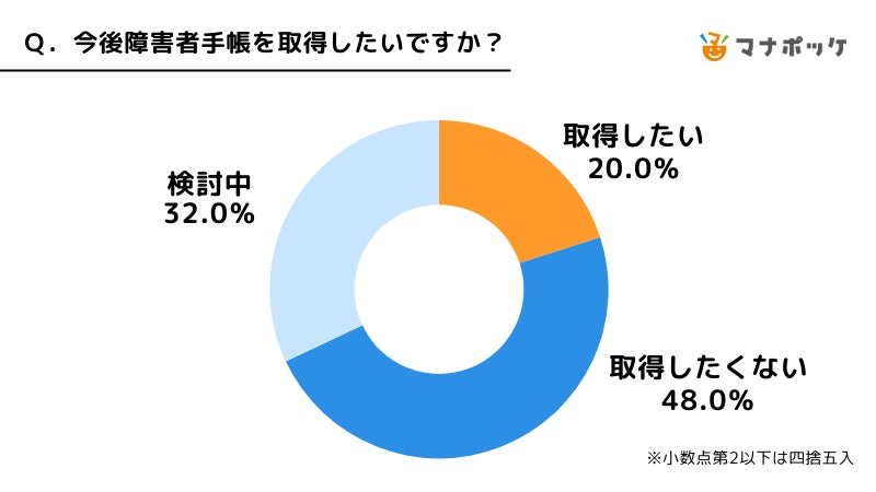 - 約5割が今後も手帳を取得するつもりはないと回答