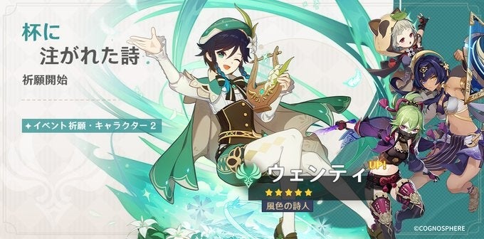 ★5「セノ(雷)」、★5「ウェンティ(風)」、★4「キャンディス(水)」がイベント祈願に登場!