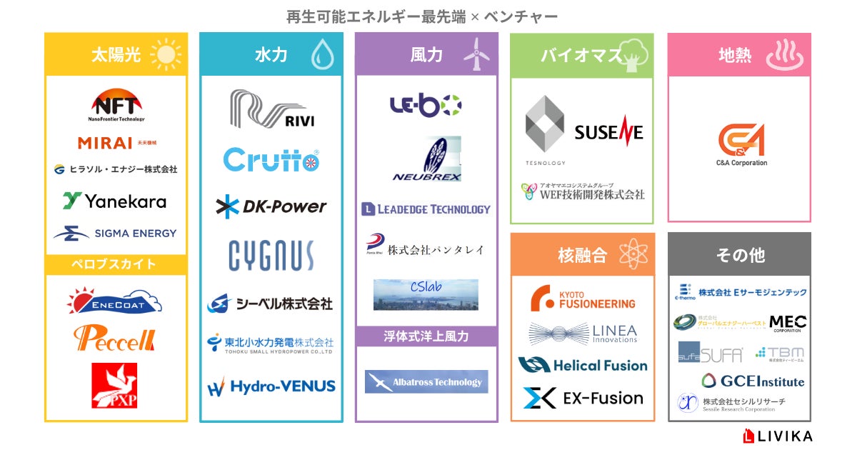 暮らしを豊かにするお役立ち情報メディア「LIVIKA」( https://livika.jp/ )は、「再エネ×Techベンチャーカオスマップ 2024年版」を作成しました。