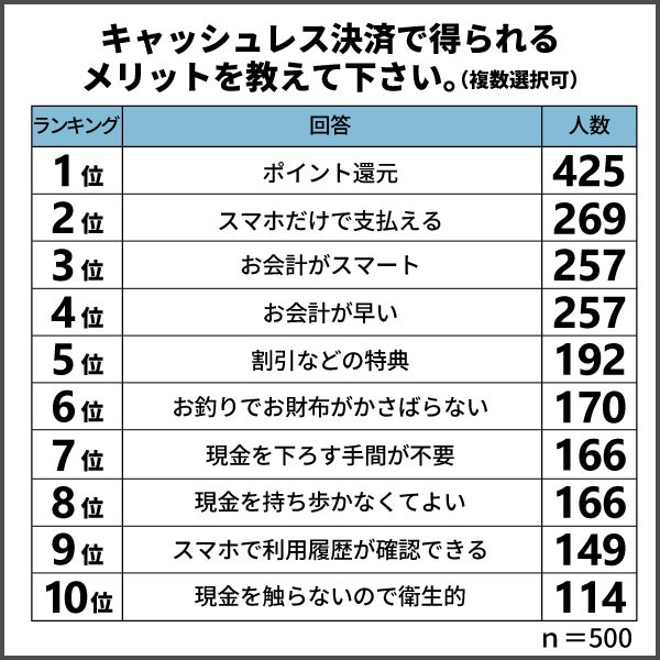 キャッシュレス決済で得られるメリットを伺ったところ、「ポイント還元」の声が大変多く集まりました。