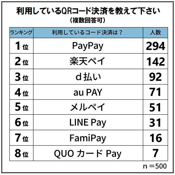 QRコード決済に関するアンケート調査結果!一番利用されてるQRコード決済第1位は「PayPay」!第2位は?