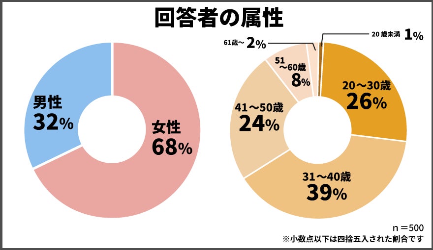 男性:32%、女性:68%と、女性の方が高い比率の回答となりました。年齢は31~40歳が39%と最も多い結果となっています。