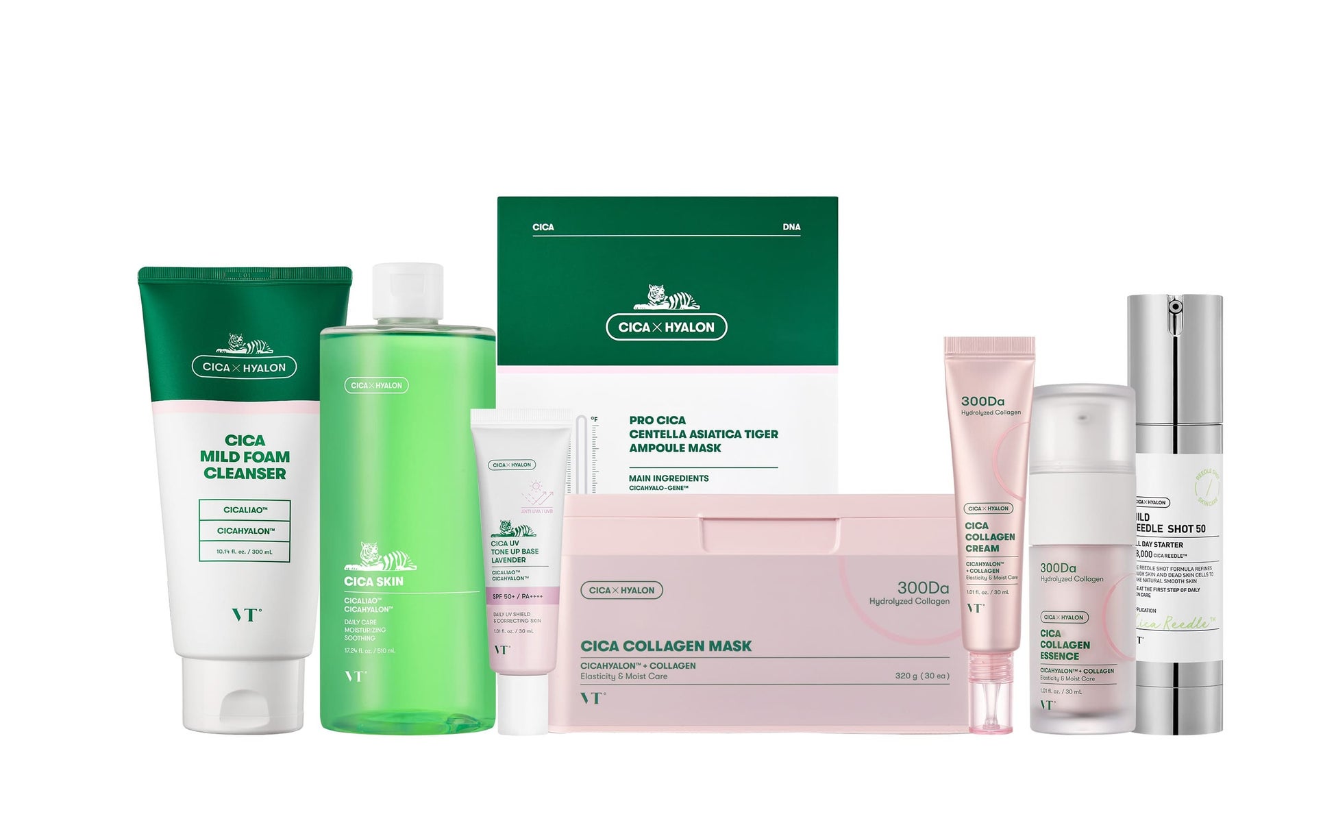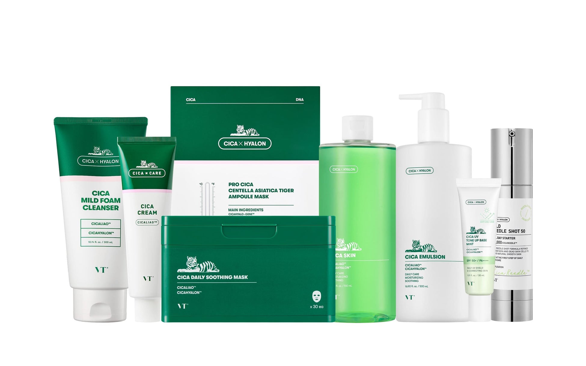 お肌を大切にする思いが人気の韓国スキンケアブランド「VT(ブイティー)」。ゆらぎ肌を健やかに整えるケアをめざして生まれた、VTを代表とする「CICA LINE(シカライン)」に配合されているのは、独自に開発した複合成分「CICAHYALON(シカヒアルロン)™*⁸」がキー成分!肌トラブルを助ける整肌成分のツボクサエキス、保湿成分であるグリーンプロポリスエキスを配合。更に、水分バリア強化を助ける3重ヒアルロン酸*⁹がプラスされて、多様な肌悩み*¹⁰へアプローチしてくれます。ゆらぎ肌から全肌質まで対応できるので、毎日気軽に使えるのも人気のヒミツ。