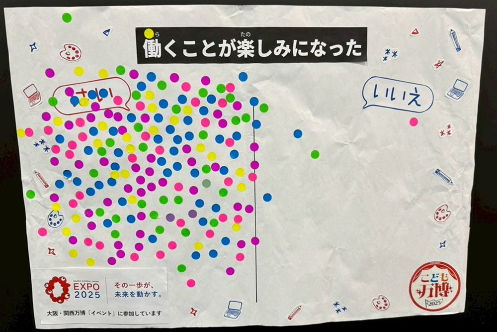 日本の子どもたちは、他国と比べて「自己肯定感」や「挑戦意欲」が低いとされ、社会全体でキャリア教育の充実が求められています。当社ではこれまでにも、「おやこ参観日」「小学生インターン」「キッズビジネススクール」など、早期から“働く”をポジティブに捉えるための活動を展開してきました。今回のこども万博出展もその一環であり「仕事の楽しさ」を体験を通して伝えました。