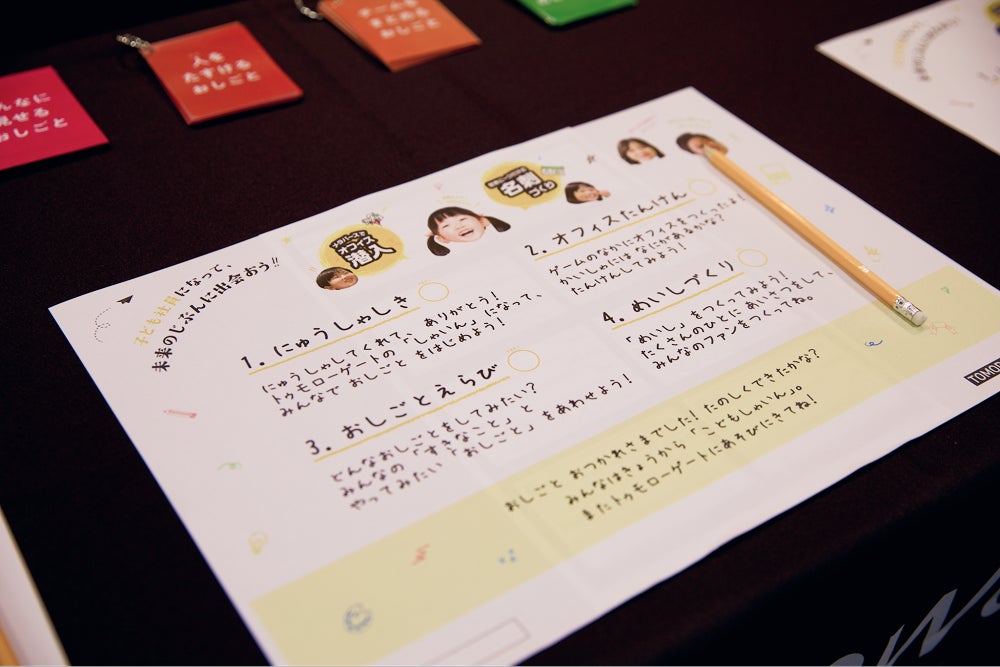 本イベントは、EXPO2025大阪・関西万博の会場「EXPOメッセWASSE」にて実施され、万博期間ラストを飾る2日間で延べ約2.4万人が来場。トゥモローゲートのブースには多くの親子が訪れ、子どもたちが“こども社員”としてオフィスを探検し、自分の夢を詰め込んだ名刺を制作。結果、約200人分の夢が集まり、体験後アンケートでは98%が「働くことが楽しみになった」と回答しました。