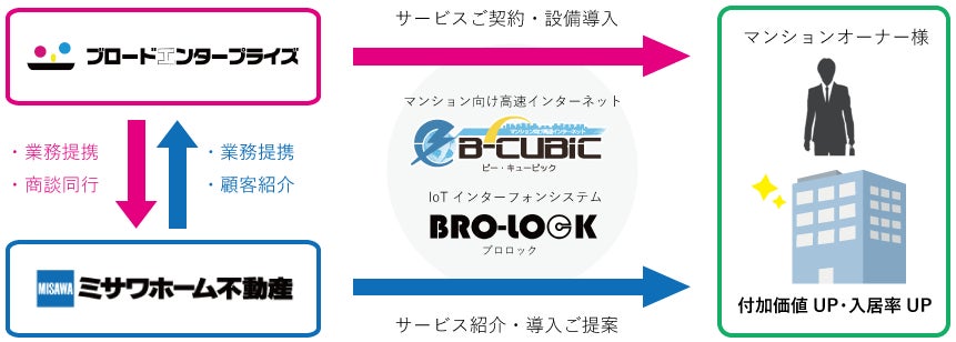 株式会社ブロードエンタープライズとミサワホーム不動産株式会社が業務提携契約を締結し、「B-CUBIC」及び「BRO-LOCK」の提供を開始。