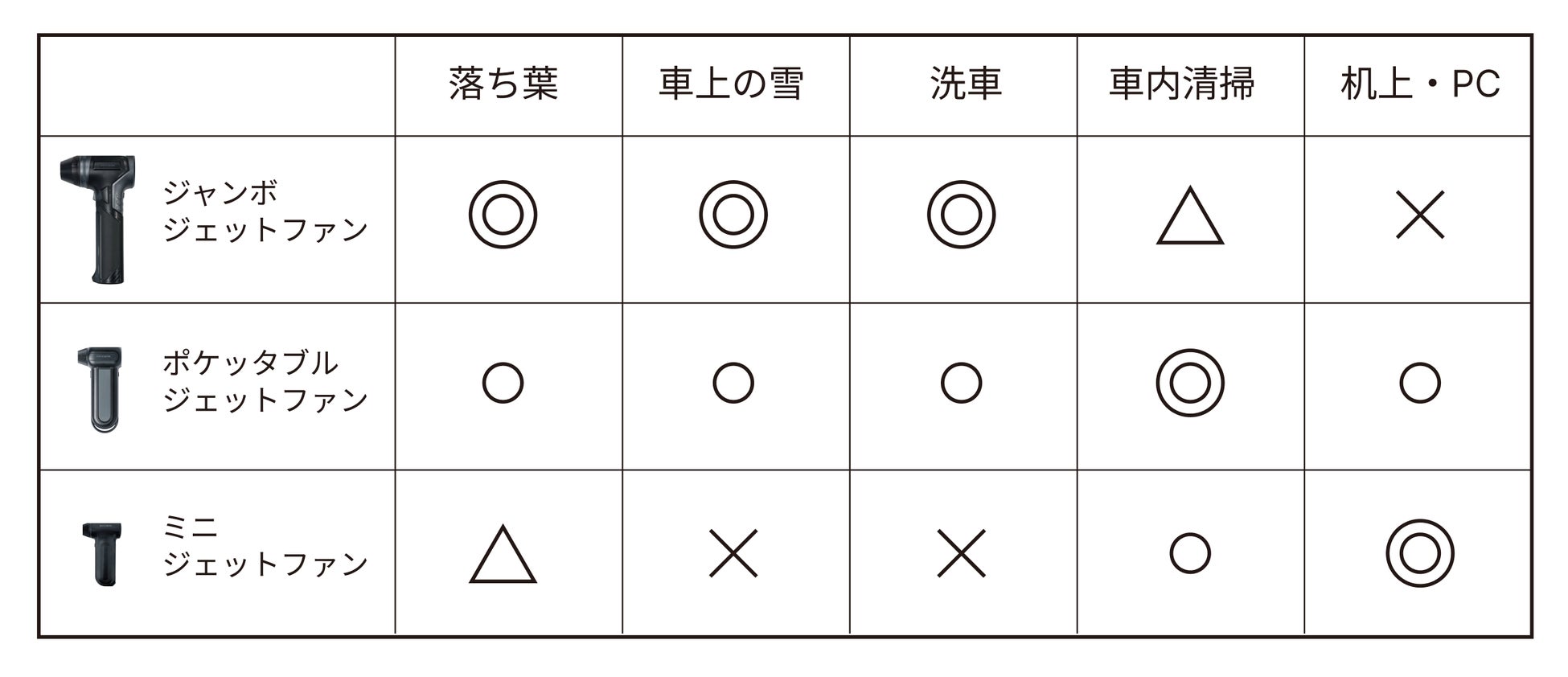 3段階の風速調整と5種類のノズルを備え、洗車だけでなく、家庭のホコリ取り、浮き輪の空気入れ、キャンプでのエアマットや焚き火の火起こしなど、さまざまなシーンで活用する製品です。
