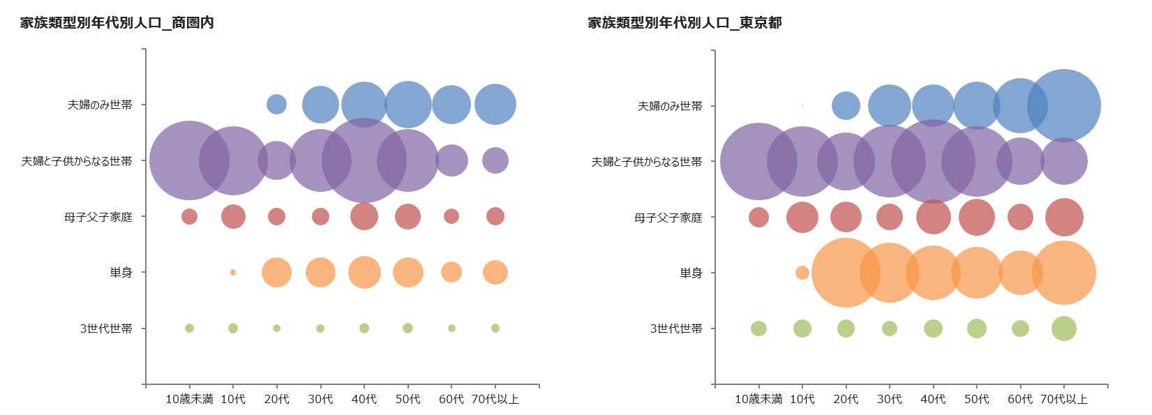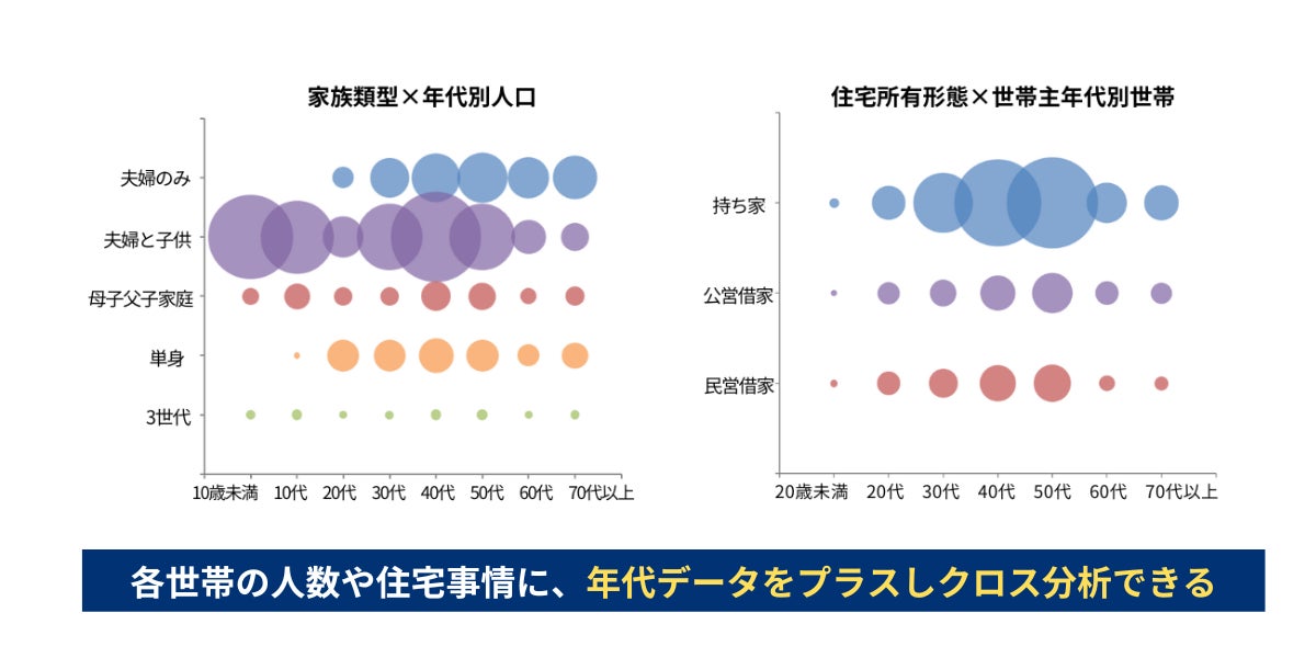 ・家族類型(夫婦のみ等):年代別人口や世帯主年代別世帯とのクロス分析が可能