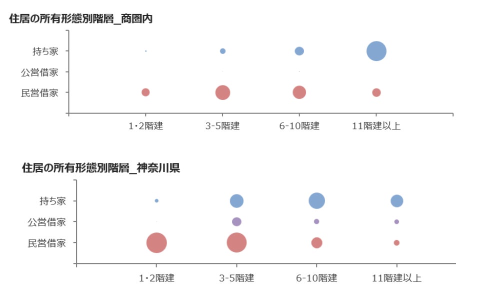 (武蔵小杉駅 住宅所有形態×建物階層レポート例)