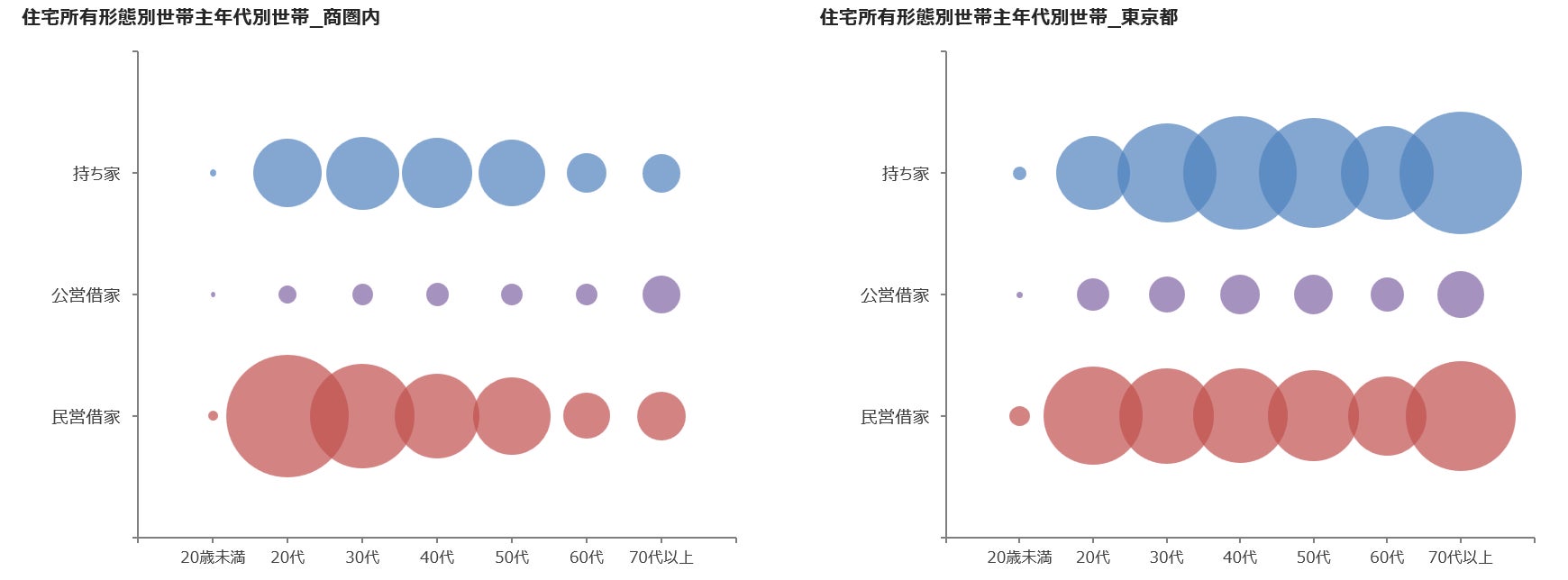 ・住宅所有形態(持ち家等):年代別人口や世帯主年代別世帯とのクロス分析が可能