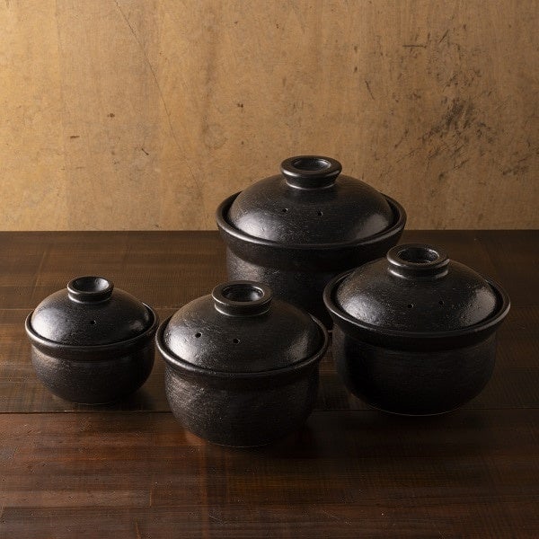 難しいと思われがちな土鍋ごはんを簡単に炊けるように開発した、有田焼の黒釉土鍋。火加減いらずで強火でたった10分で炊けるという手軽さがなによりの利点です。