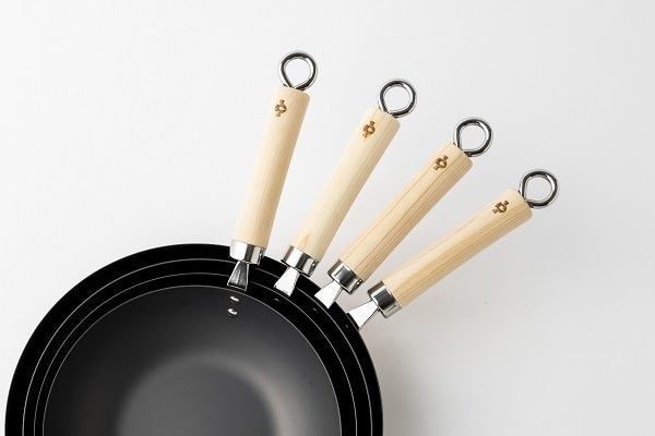 リバーライトの鉄フライパンと、中村銅器製作所の行平鍋のハンドルにも、東濃ひのきを採用しています。