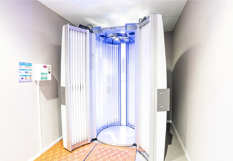 5分で通常マシンの20分の効果という最新型のクイックタンニングマシンを導入しています。