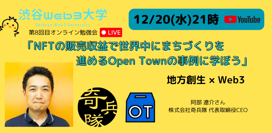 【革命家募集】Web3に特化した実践型のプロジェクト創発コミュニティ「渋谷Web3大学」新春入校生募集中。大人気Web3勉強会イベントも続々決定。