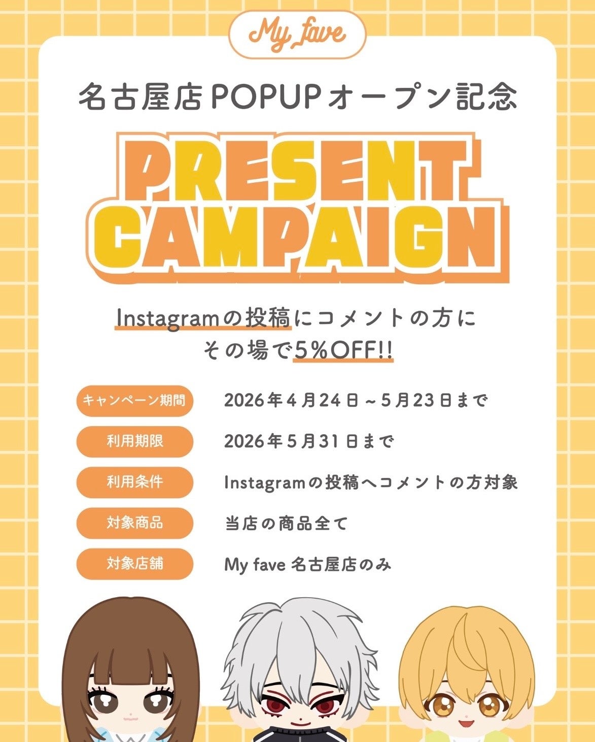 トレンドの最先端・東京の新大久保で圧倒的な人気を誇る『My fave(マイフェイブ)』が、2026年4月24日(金)から8月16日(日)までの期間限定で、名古屋PARCO(西館B1F)にオープンいたします。