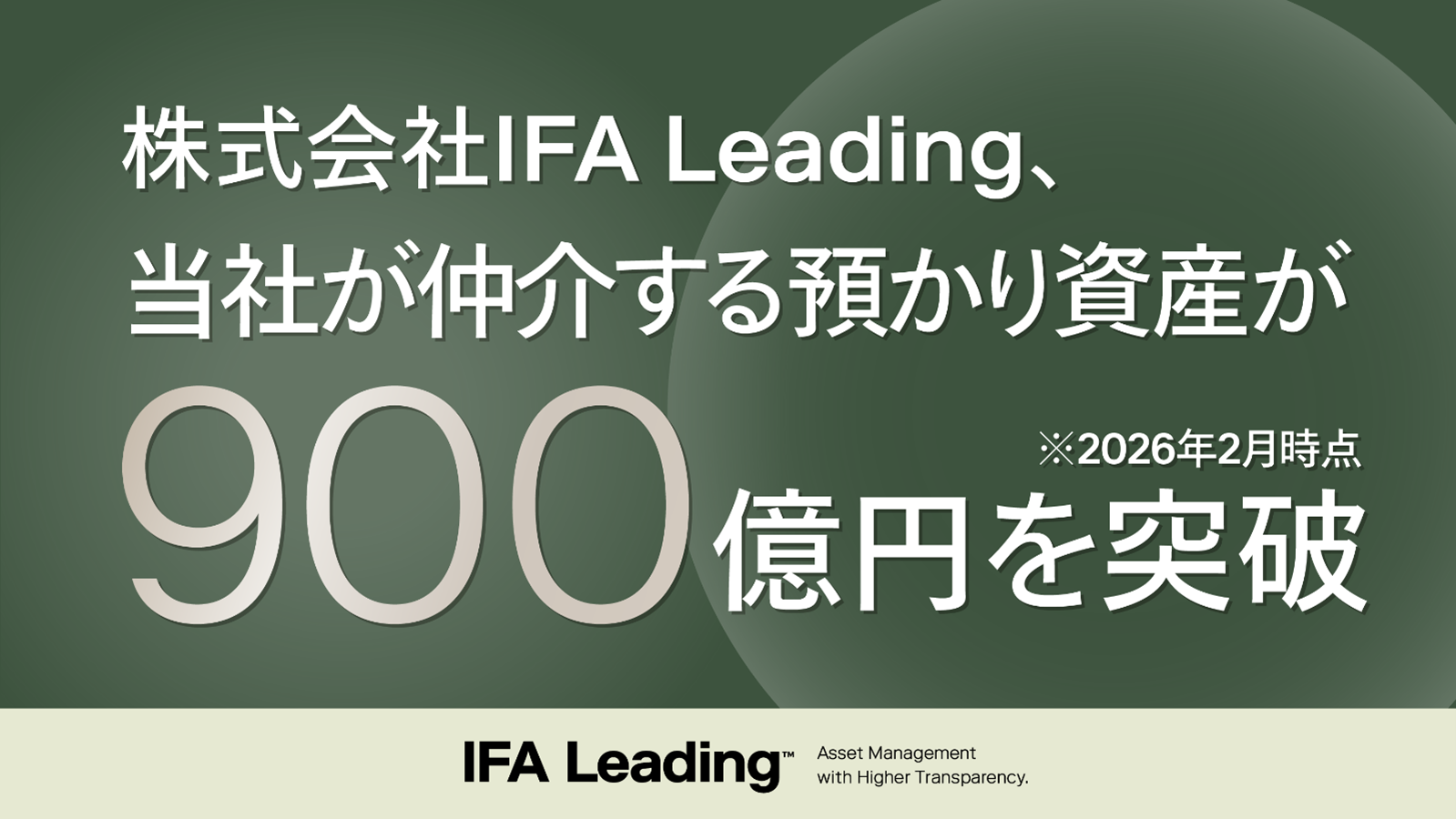 独立系ファイナンシャルアドバイザー(IFA)法人として日本の金融サービスの変革を目指す株式会社 IFA Leading (本社:東京都渋谷区、代表取締役:長谷川 学)は、2026年2月時点で当社が仲介する預かり資産が900億円を突破したことをお知らせいたします。