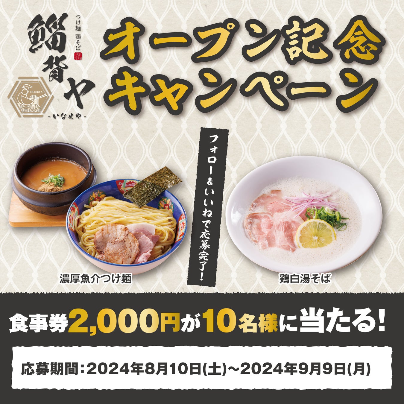 『つけ麺 鶏そば 鯔背ヤ』(住所:福岡県北九州市小倉北区)を2024年8月20日(火)にオープン致します。