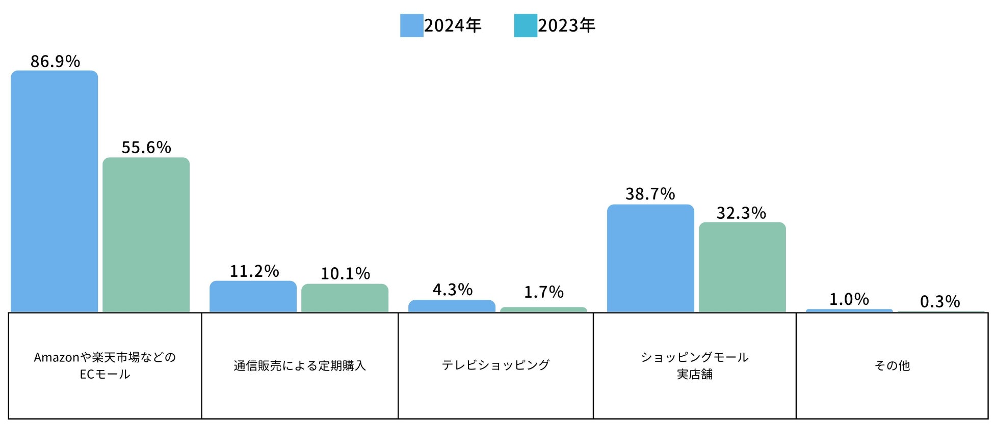 回答者全体の86.9%がECモール利用者であり、昨年と比較しても30%以上ポイントをアップ。EC利用者にとってライブコマースが身近になっていて、切っても切り離せない販売手法のひとつになっていることがわかりました。