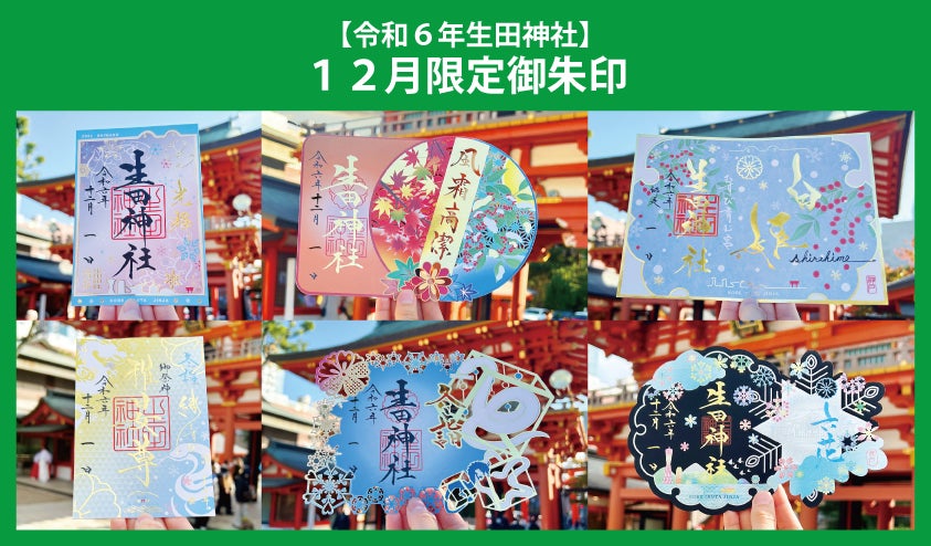 生田神社(兵庫県・神戸市)にて令和6年12月1日(日)より12月限定の御朱印6種を授与いたします。