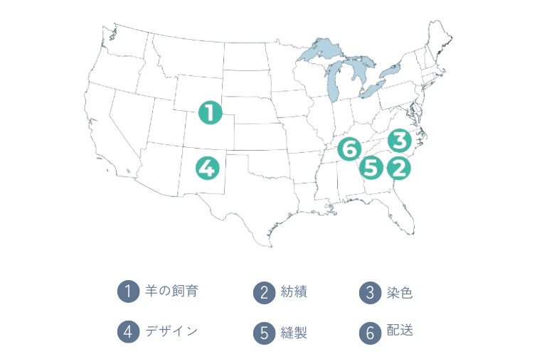 そして製造時に排出される二酸化炭素を軽減するために、糸の紡績、デザインの考案、縫製などの一連の流れを全てアメリカで行っています。