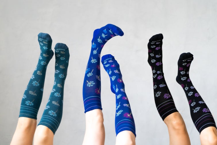アメリカに本拠地を持つソックウェルは2008年に創業し、時代の流れ、ファッションのトレンド、花などの自然のモチーフからインスパイアされた、色とりどりの美しいデザインのセルフケアソックス(着圧ソックス)を展開しています。