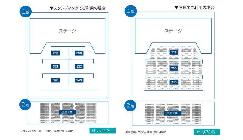 収容人数 :スタンディング使用時 2,244名/座席使用時 1,070名