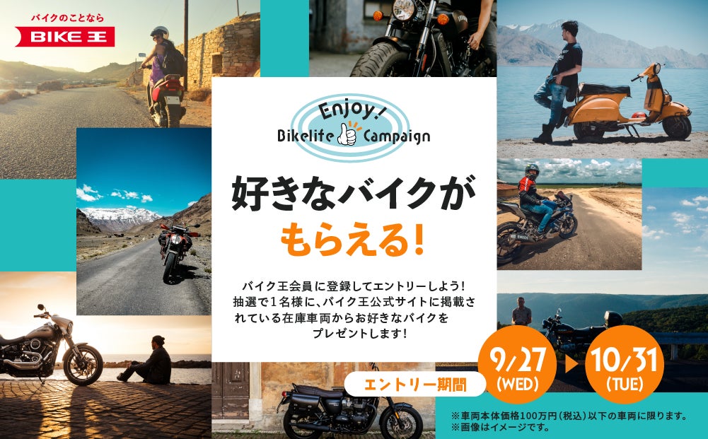 バイク王会員登録&応募するだけ!100万円までのバイクを選んでもらえる「Enjoy!バイクライフキャンペーン」を9月27日より実施