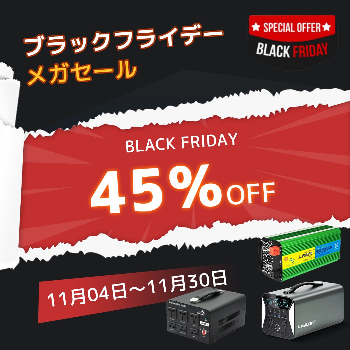 今年のブラックフライデー!お客様への特別な感謝の気持ちとして、驚きの割引をご用意しました。公式サイト限定最大45%OFF割引を提供します。