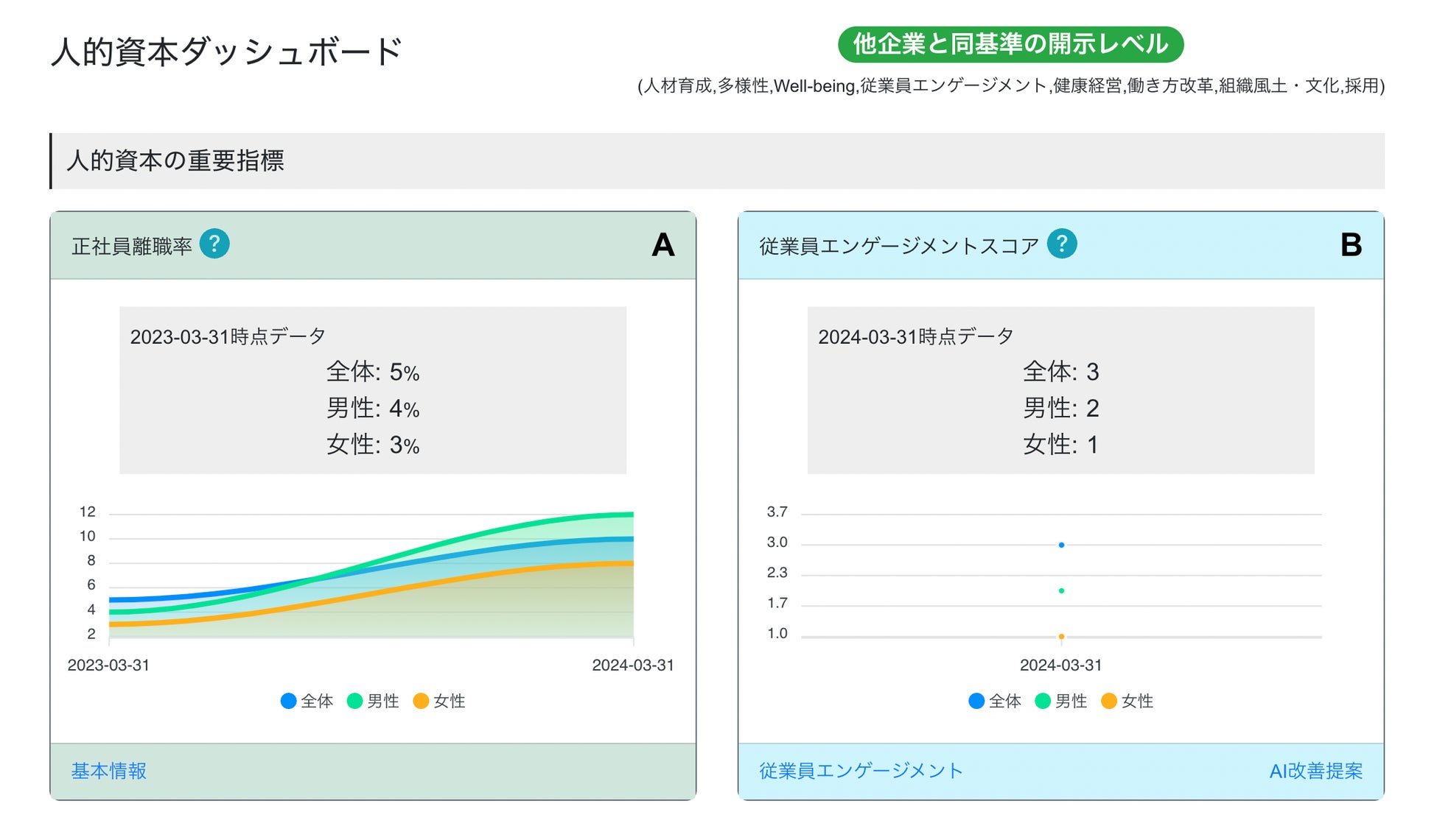estomaでは、これまでも人的資本を簡易的に開示ができるサービスを展開してきました。この度、上記の共同研究を踏まえ、さらなる開示や管理の質向上と効率化のための以下機能を追加いたしました。