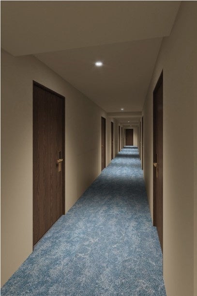 客室階の共用廊下や各客室の床面にも同様のモチーフを取り入れ、ホテル全体で「浅草らしさ」と水辺の情緒を感じられるデザインに仕上げました。