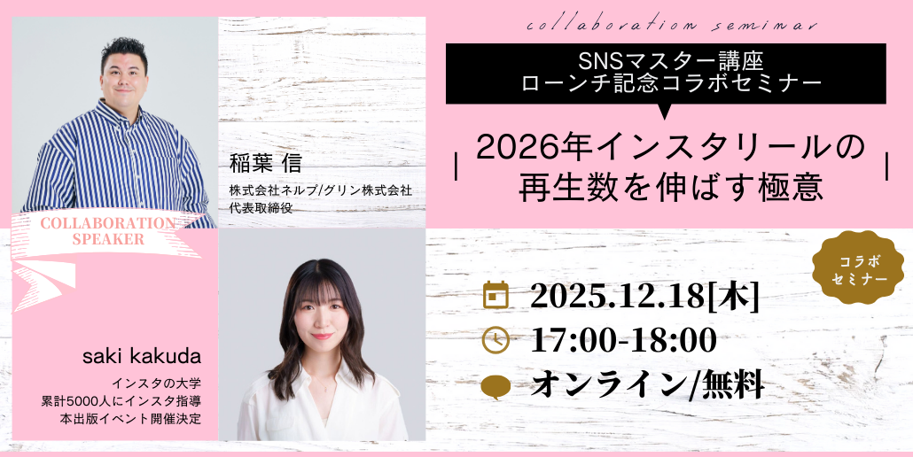 SNSマーケティングを網羅的に学習できる、2025年12月限定「豪華SNSコラボセミナー(全7回)」を開催いたします。