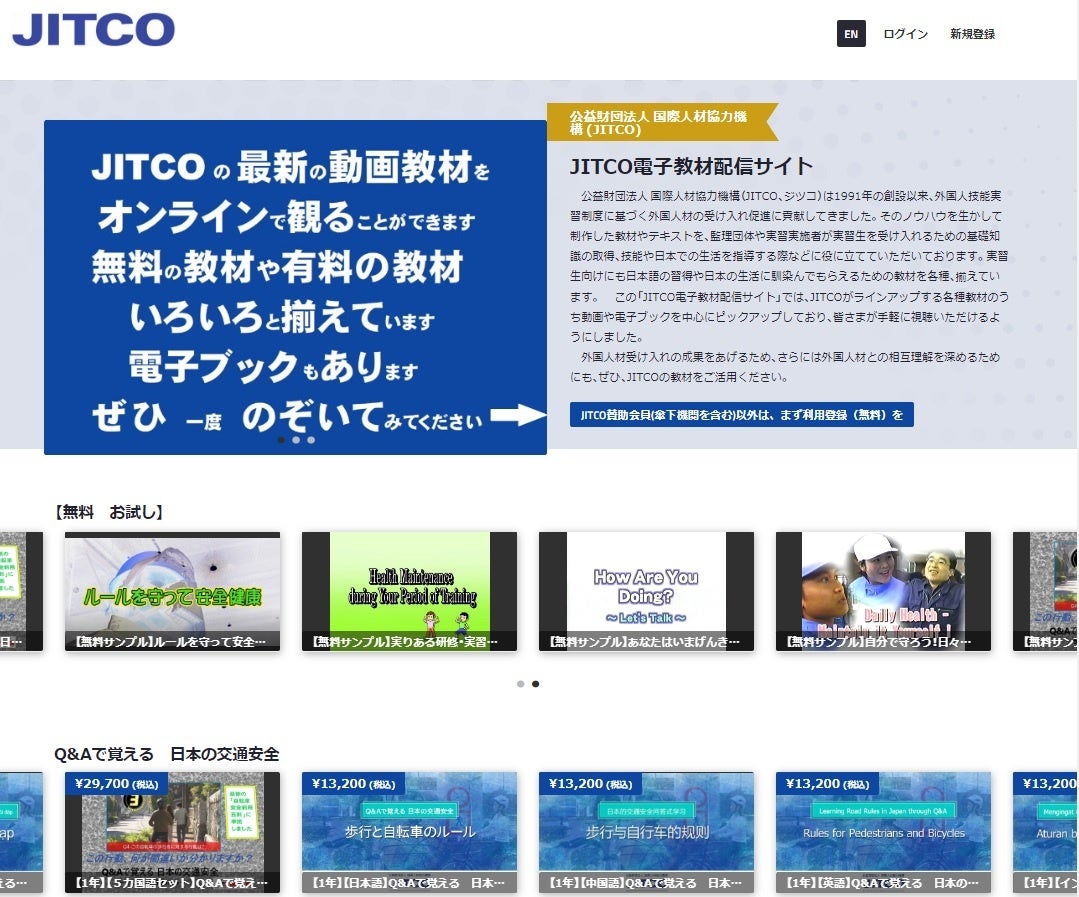 「JITCO電子教材配信サイト」には、有料のコンテンツと無料のコンテンツがあります。有料のコンテンツは視聴希望の期間を設定してクレジットカード決済で購入していただけます。また、書籍の教材にはラインアップしていない「特定技能」制度の説明動画など、電子教材配信サイト専用のオリジナル動画もたくさんあります。JITCOの賛助会員とその傘下機関の方は、有料コンテンツを割引価格で購入できるほか、会員専用の動画教材も視聴していただけます。