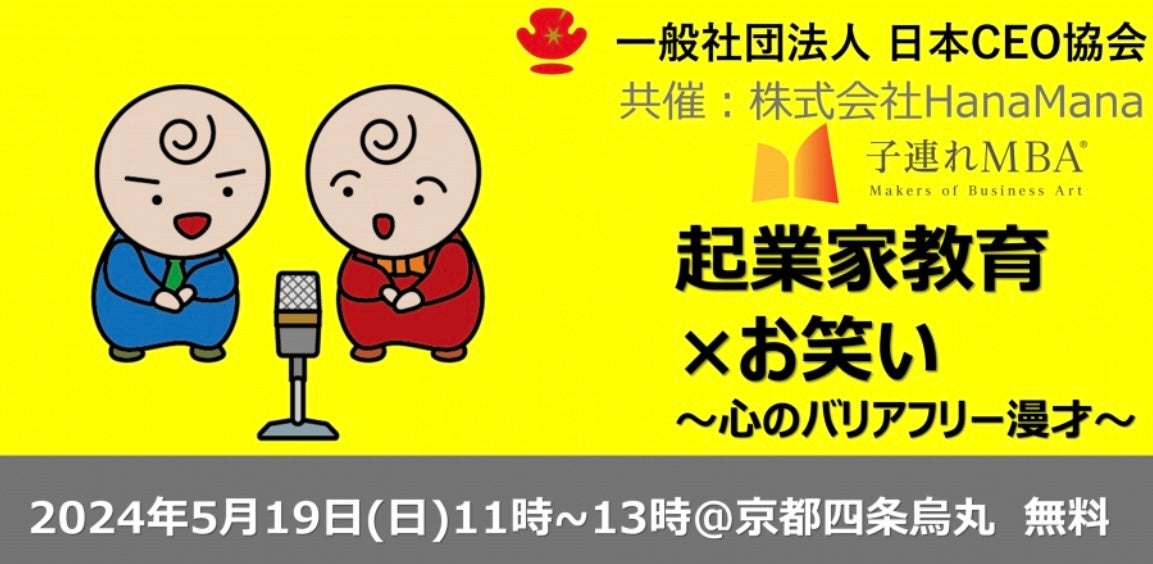 一般社団法人日本CEO協会は2024年5月19日に、障害のあるなし関係なくお子様とその親御様を対象とした、お笑いと起業家教育を掛け合わせたイベントを行います。