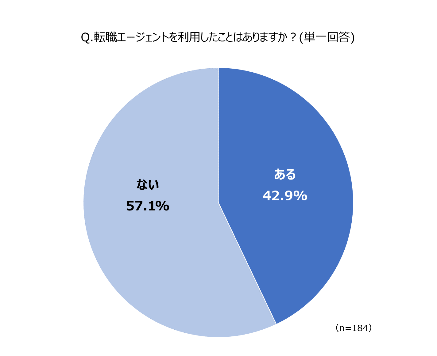 25歳~39歳の男女の42.9%が「転職エージェントを利用したことがある」と回答