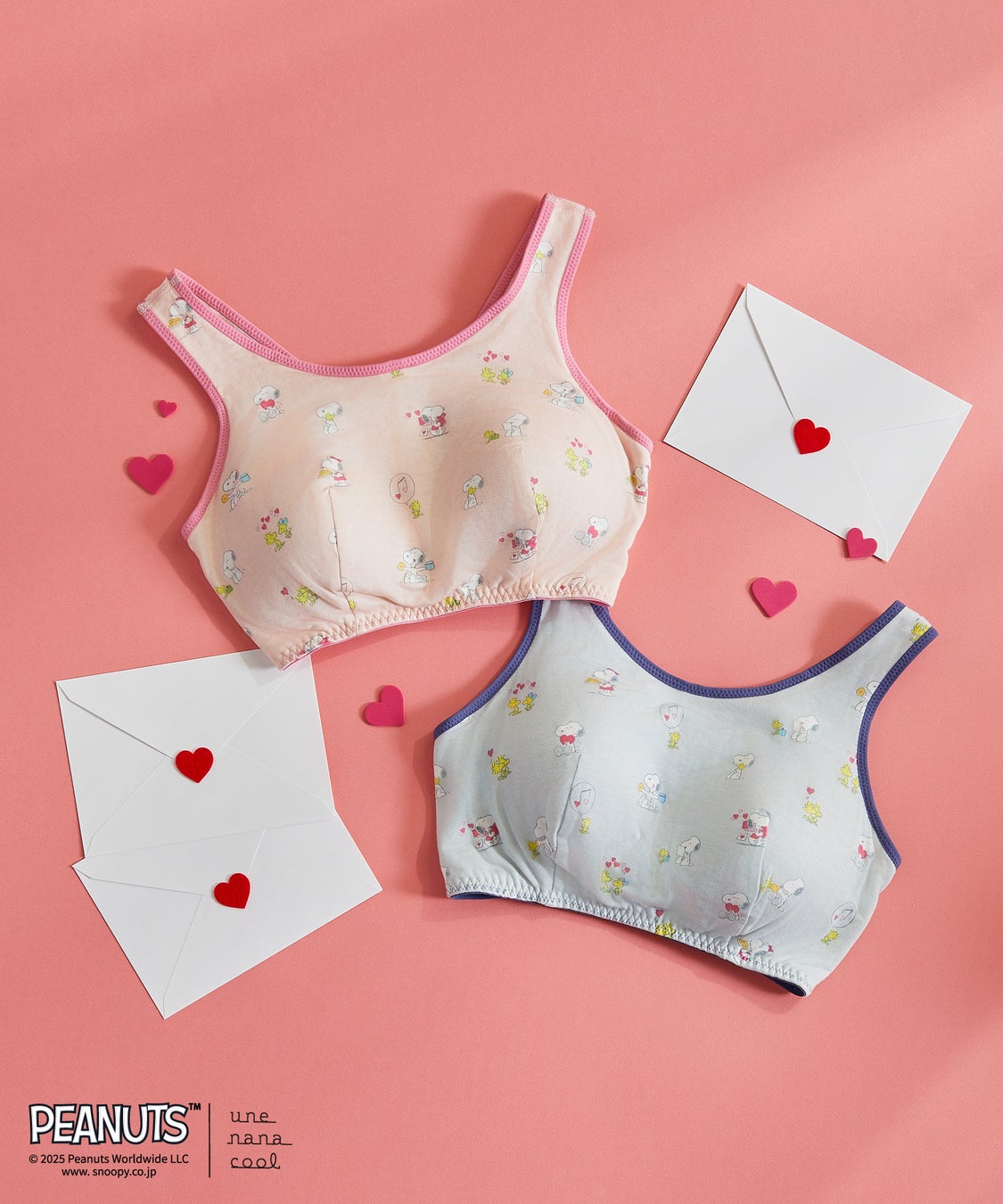 “女の子の人生を応援する”をブランドのパーパスとして掲げる「ウンナナクール」と、多くの人々に愛されてきた『ピーナッツ』のスヌーピーとスヌーピーのかわいい女きょうだいのベル、親友のウッドストックのハートフルなデザインのコラボレーションです。