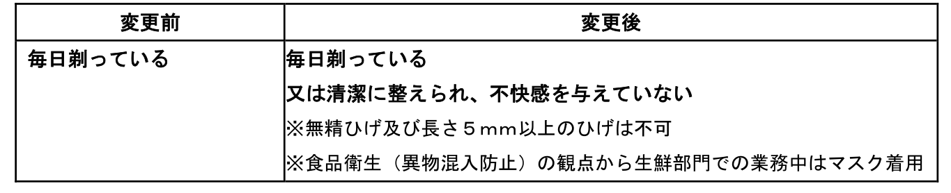 そして今回、身だしなみの多様化を更に進めるべく、従業員の髭(ひげ)の基準を見直し、清潔に整えており、且つ不快感を与えていないことを条件に制限を緩和します。